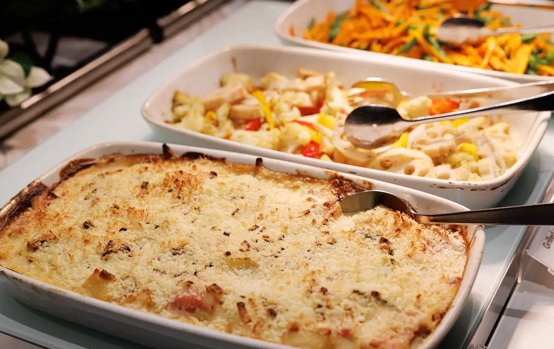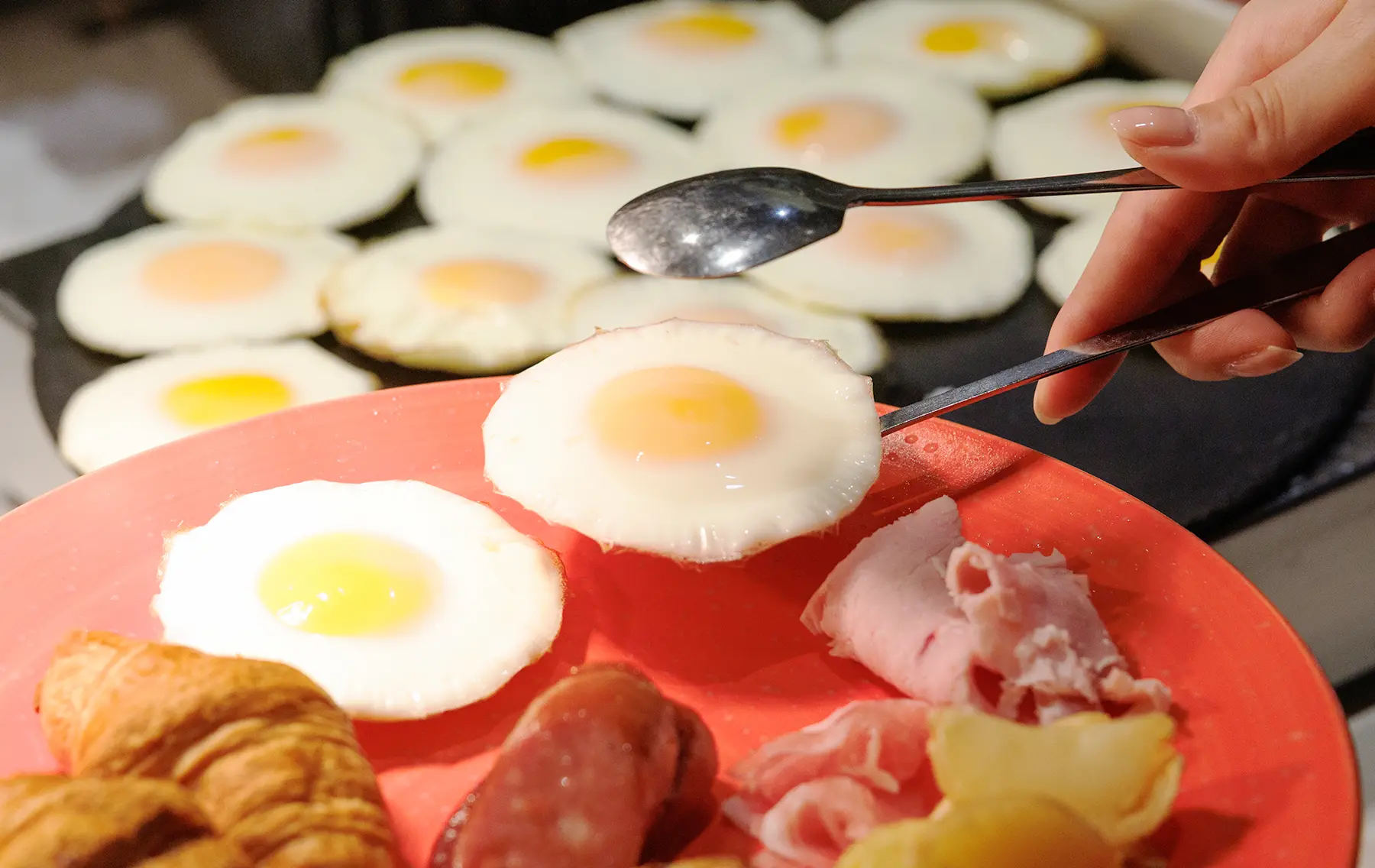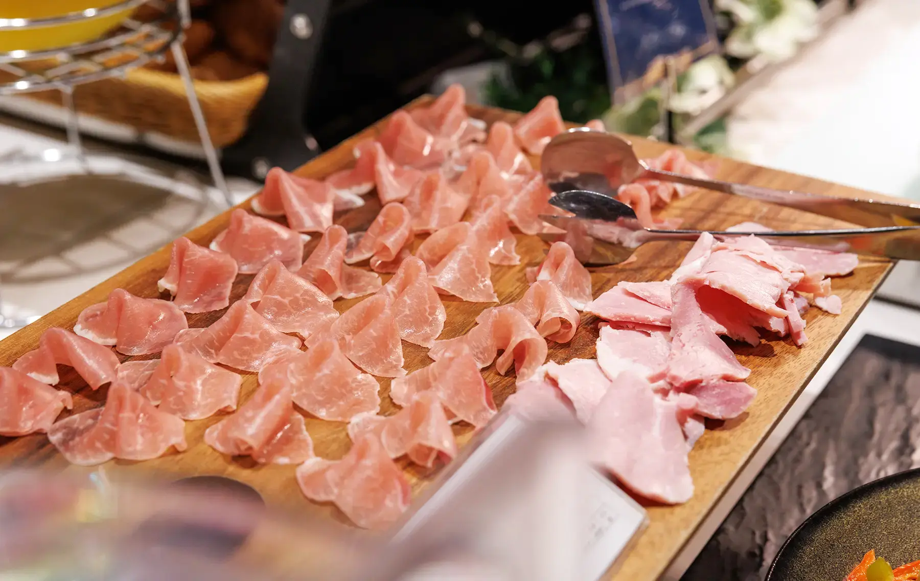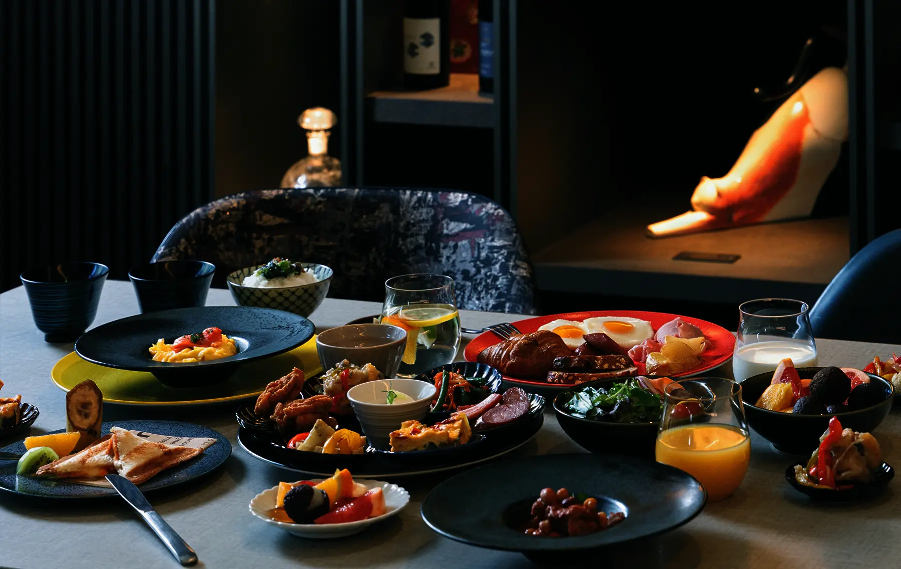 卵料理やお肉料理、ヴィーガンメニューを含むユニークなメニューから選べるプリフィックスのメイン料理と、オープンキッチンで作り上げる逸品料理からお好きなものをおとりいただくフルブッフェスタイルで、心と身体が歓ぶ朝食をご準備しております。