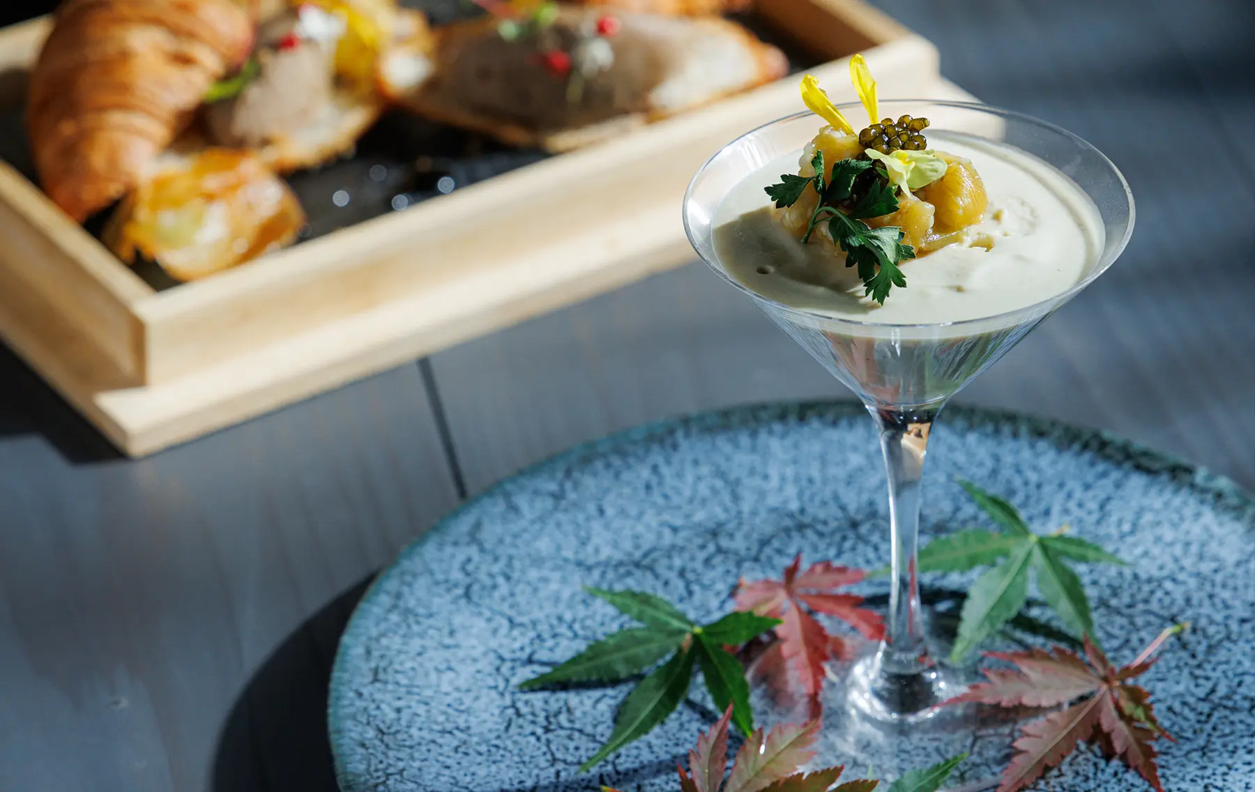 彩り豊かな前菜をはじめ、シェフのスペシャリテ「低温調理」を施したメイン料理を心ゆくまでお楽しみください。
