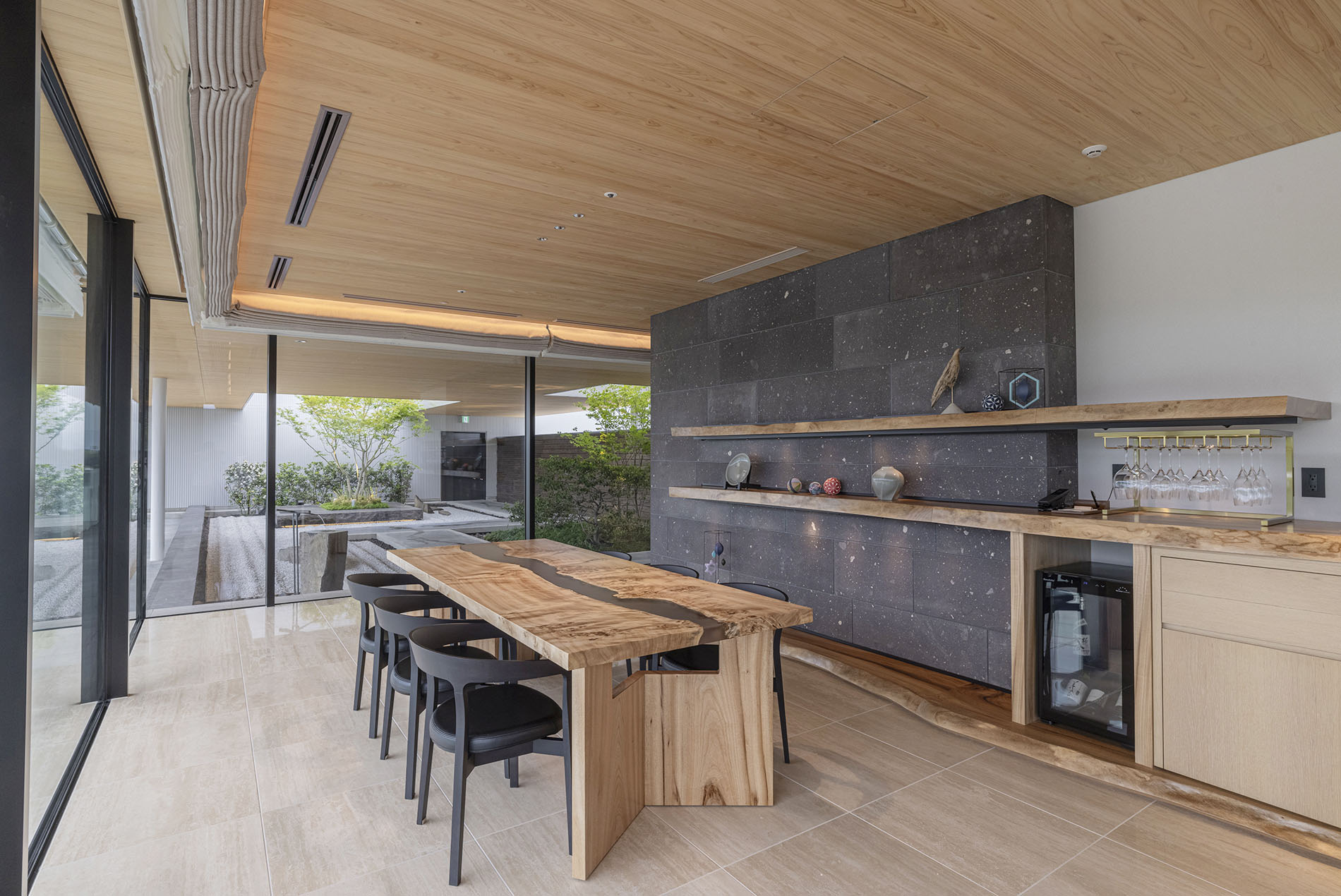 The living room features a large garden overlooking the changing seasons and the colorful Mount Hanaoka. It is a luxurious space, the only one of its kind located away from the regular guest rooms, and also has a spacious bedroom. Incorporating traditional crafts and interior design with ties to Kumamoto, this room allows you to spend a special time while feeling the atmosphere of Kumamoto.