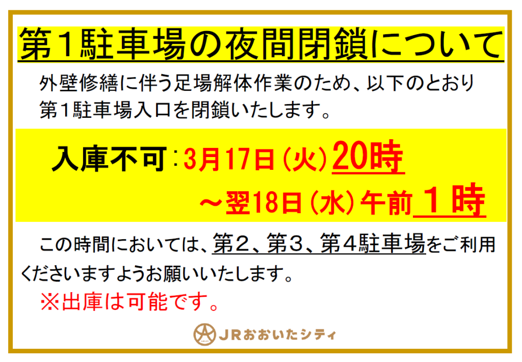 This time, the affiliated parking lot, Amu Plaza Oita City No. 1 Parking Lot