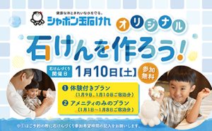 JR九州ホテルズアンドリゾーツ株式会社が運営するJR九州ステーションホテル小倉(福岡県北九州市小倉北区、総支配人 白濱正信)では、ご家族でご宿泊されるお客さまを対象に、2026年1月9日(金)・10日(土)の宿泊者限定で「オリジナル石けん作り体験付宿泊プラン」を販売いたします。本プランでは、地元回に続く第2弾として実施する本企画では、新たにフォトスポットの設置や開催スペースの拡大、客室装飾の充実を図りました。日頃、商品企画を専門としないホテルスタッフが、ご家族連れのお客さまに安心してお楽しみいただける体験を提供したいという想いのもと、無添加にこだわって企画・開発した宿泊プランです。企業である「シャボン玉石けん株式会社」(福岡県北九州市若松区南二島2丁目23番-1号 代表取締役社長 森田隼人)とタイアップし、オリジナル石けん作り体験に加え、無添加シャンプーなどのアメニティ5種をご用意。ご好評をいただいた前回に続く第2弾として実施する本企画では、新たにフォトスポットの設置や開催スペースの拡大、客室装飾の充実を図りました。日頃、商品企画を専門としないホテルスタッフが、ご家族連れのお客さまに安心してお楽しみいただける体験を提供したいという想いのもと、無添加にこだわって企画・開発した宿泊プランです。
