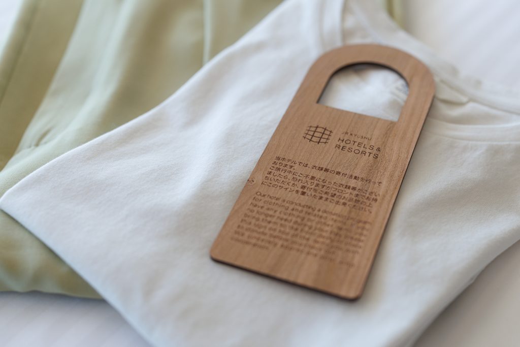 ・客室内での回収にも対応しており、寄付を希望する場合は、客室に設置された「回収希望カード」を衣類等の上に置くだけで参加が可能です。回収はチェックアウト後にホテルスタッフが行います。