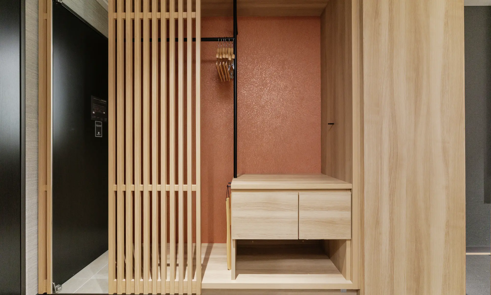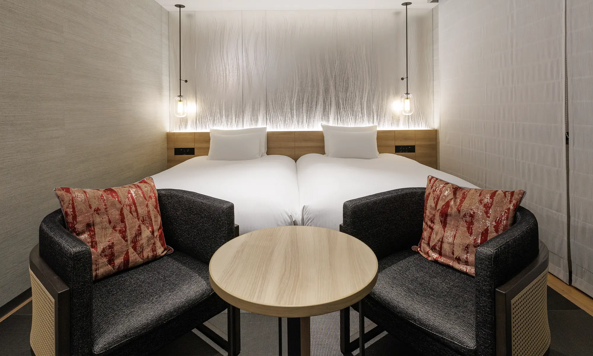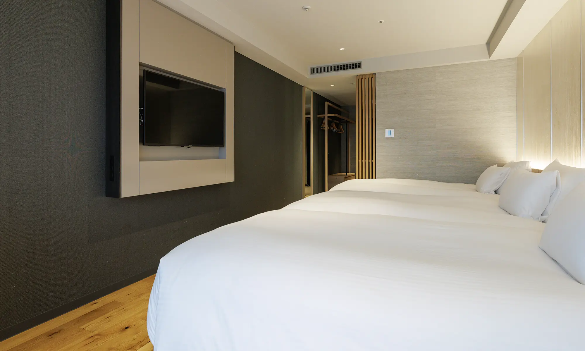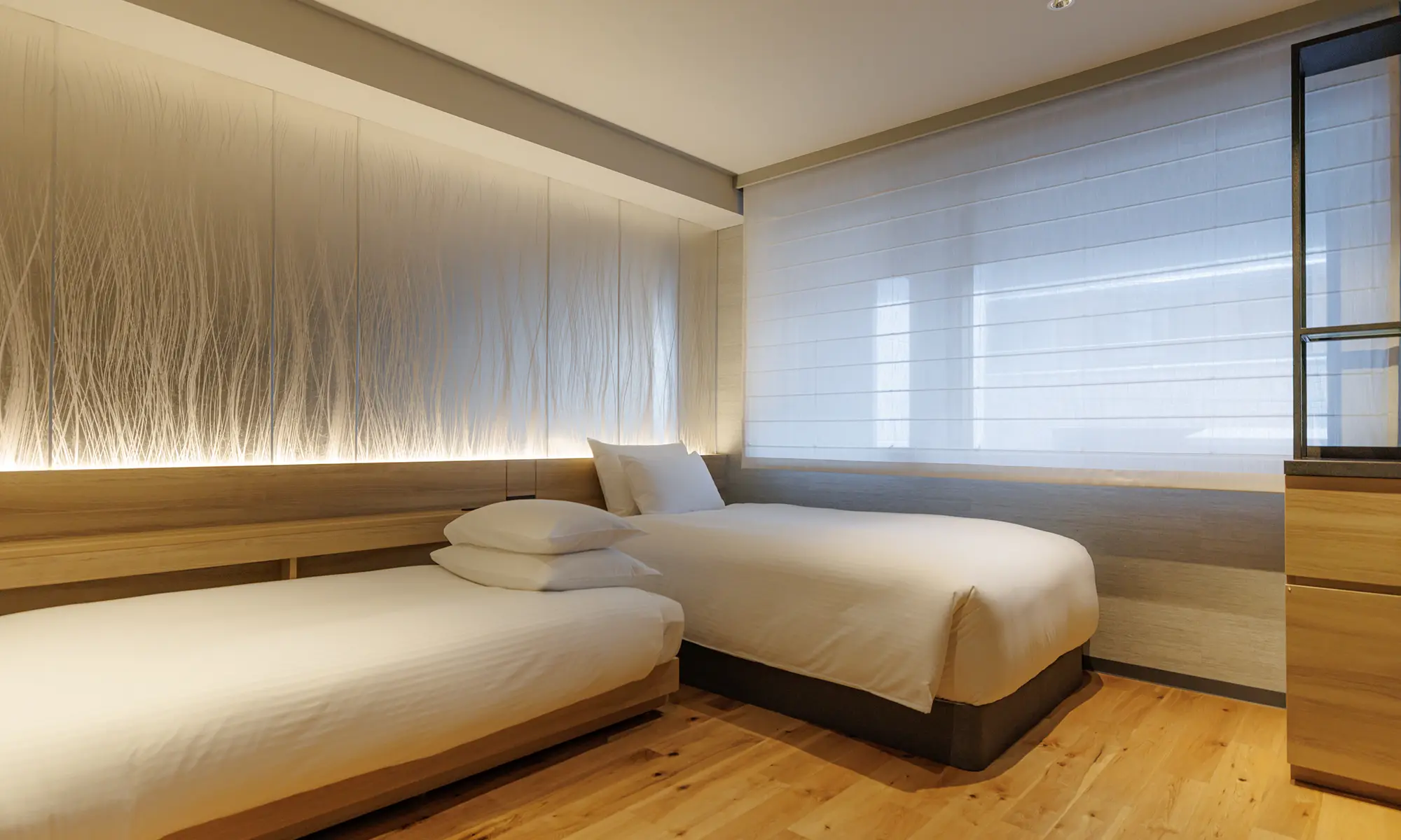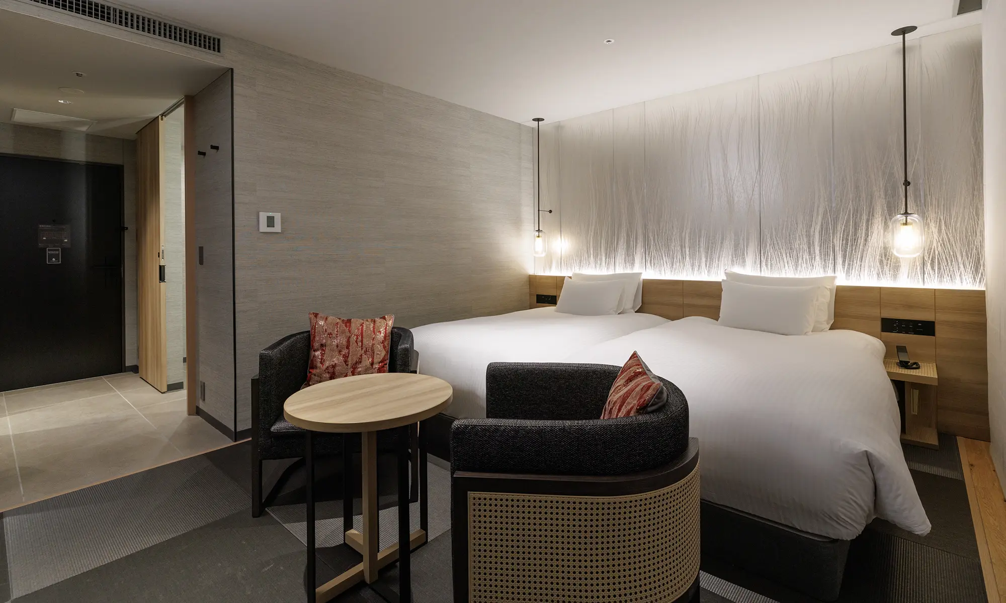 55m2的宽敞房间,常设4张标准床。在房间里面的榻榻米空间,为大家准备了可以放松的京都煎茶。另外,有两处宽敞的洗漱空间,出门的早晨也可以悠闲地准备。最适合家庭或团体住宿。