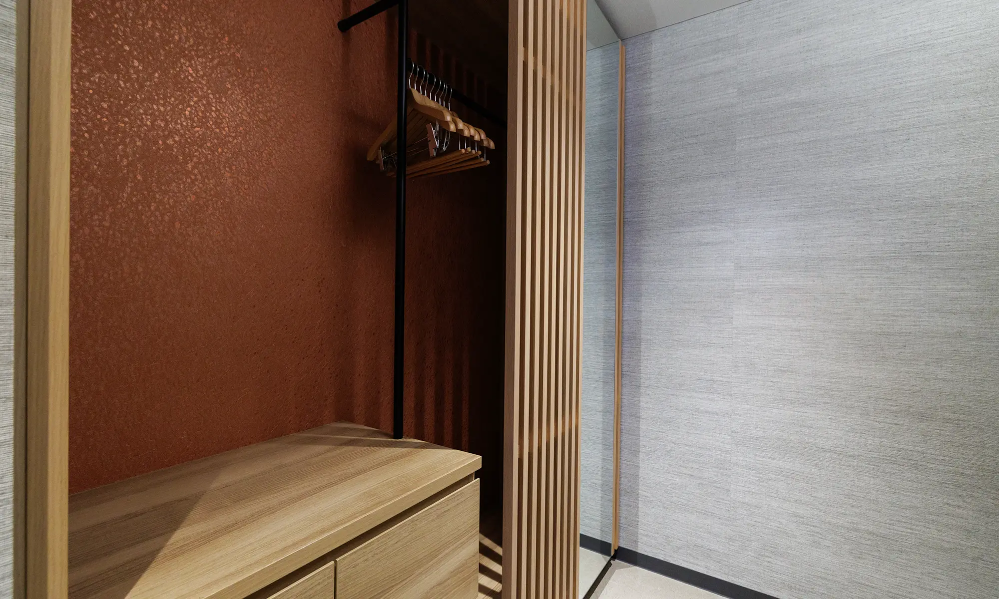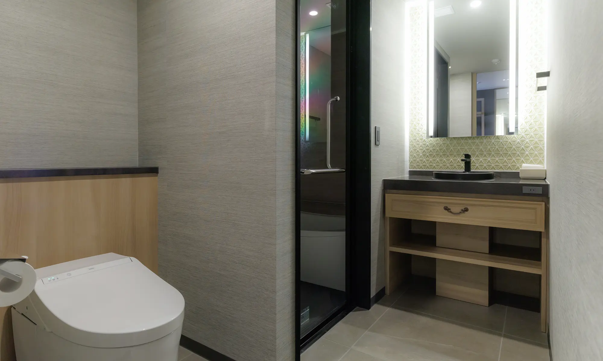 确保了宽敞的通道宽度,开关和家具的配置也很讲究等,以打造舒适好用的房间为目标。残疾人、老年人、带孩子的客人等,谁都可以放松。